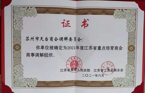 会上,我商会调解委员会被确定为“2021年度江苏省重点培育会商事调解组织”,并颁发了荣誉证书,全省共有13家商会商事调解组织被确定。我商会调解委员会将认真贯彻落实会议精神,要站高位加强和提升商会调解工作,协同参与社会治理,营造良好的法治营商环境,为会员企业健康发展守住第一防线;要高标准夯实组织建设,强化商会调解功能,提升商会服务能力,发展有特色商会调解组织,促进商会商事调解组织规范运行。