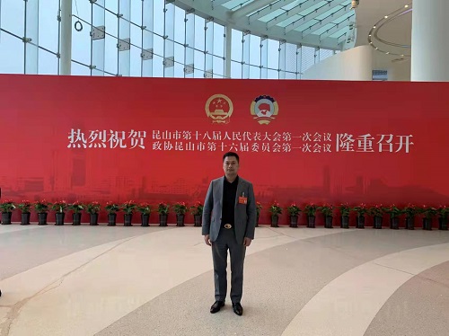 苏州市天台商会常务副会长、昆山天台商会秘书长、昆山启恩贸易有限公司董事长杨伟坚作为新当选的人民代表出席本次会议。