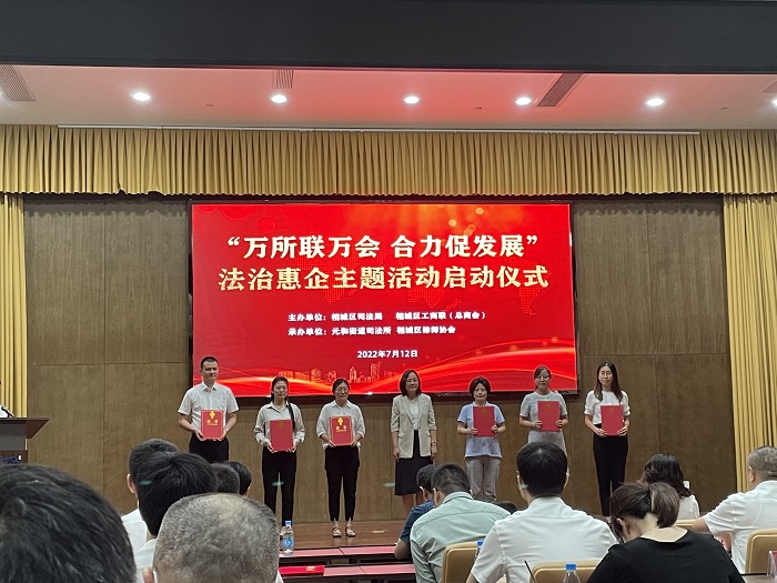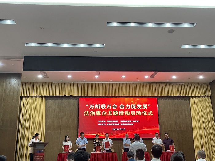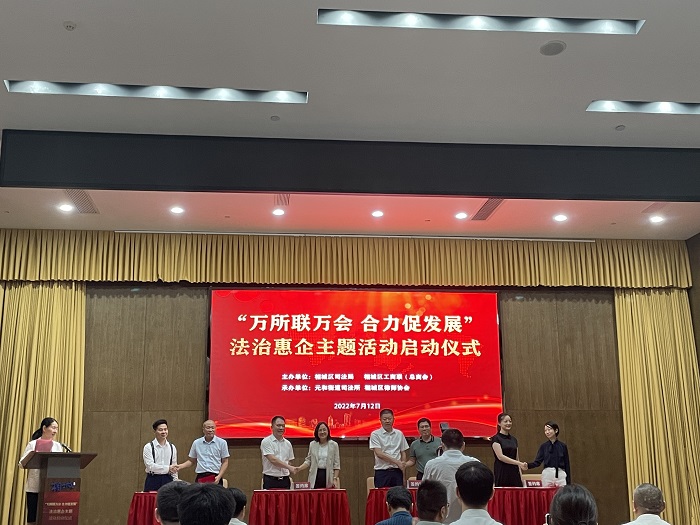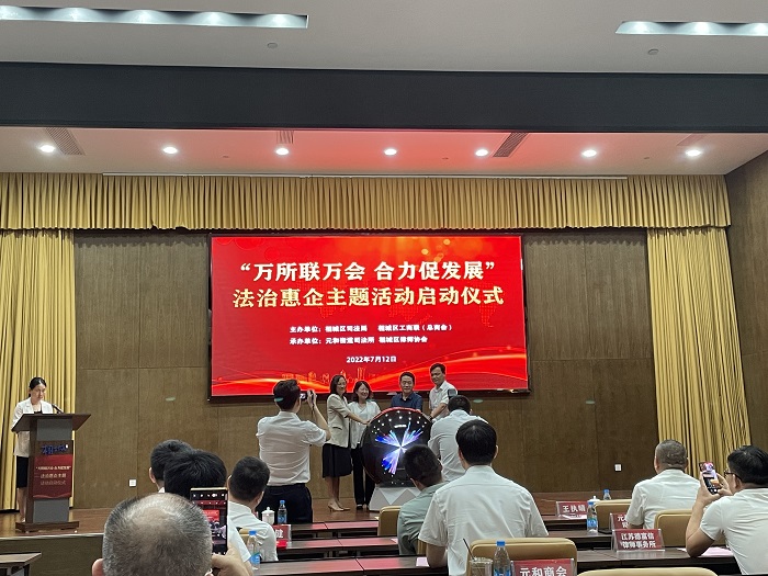7月12日,相城区“万所联万会 合力促发展”主题系列活动正式启动。相城区区区委常委、政法委书记王执晴,区司法局局长刘洪印,区工商联主席姚娟等出席启动仪式。有14家律师事务所、45名商会参加活动。