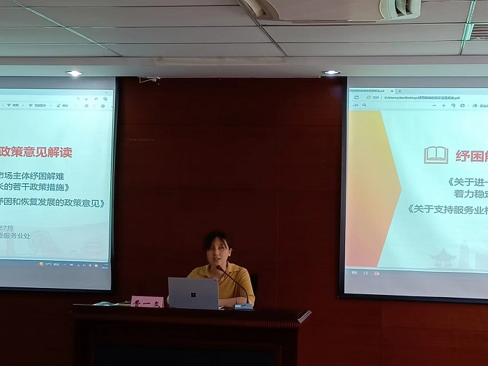 苏州市发展和改革委员会服务业处处长费一文,对纾困解难的政策进行解读,讲解了《关于进一步帮助市场主体纾困解难着力稳定经济增长的若干政策措施》与《关于支持服务业相关领域纾困和恢复发展的政策意见》两个文件,为线上、线下的企业带来干货满满的“政策大礼包”。