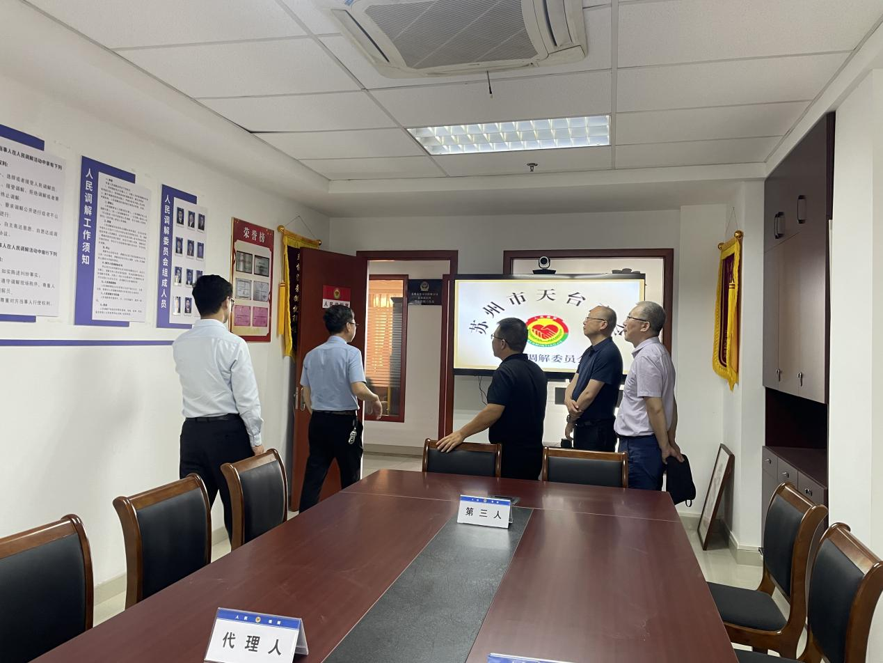 首先参观了苏州北桥国际家具材料交易中心,随后来到商会,详细考察了解了党员活动室、人民调解室、融诉驿站、矛盾纠纷调处化解工作站、商会秘书处,以及了解商会的架构和概况、发展历程、公益事业、商会所获得的相关荣誉。