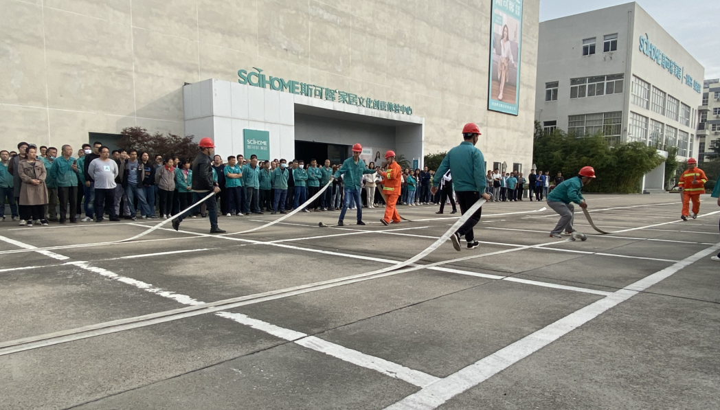 随着刺耳的火险报警声响起,斯可馨家居全体员工在安全员的指挥下有序撤离,同时公司安全组成员立即组织人员开始查找起火点,通过消防水枪对起火点进行初步抢救,刚刚燃起的火点很快被扑灭。
