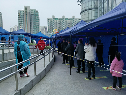 26日晚上22:30时苏州市天台商会监事长、志愿突击队长戴飞龙接到相城区相关部门的通知,27日上午6:30时至12:00时进行核酸检测需要志愿者,于是志愿者微信群立马发出志愿者接龙,不一会儿一支队伍就组成了。“好的,时间不早了,大家休息吧,明天早晨6:00时见!
