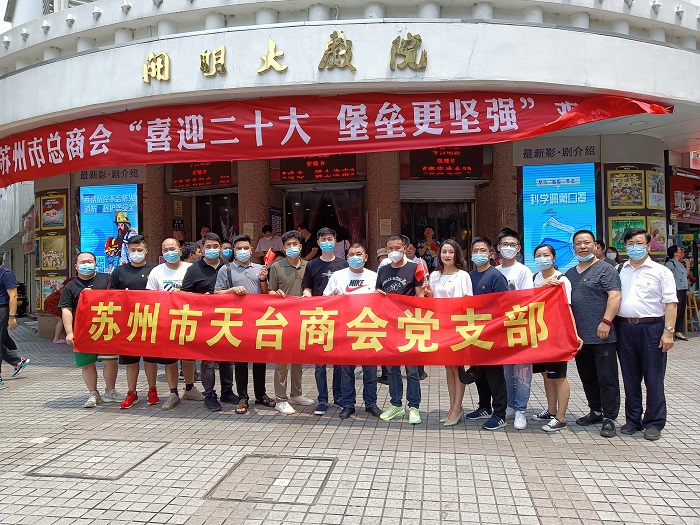 6月17日下午,苏州市总商会组织开展“喜迎党的二十大 堡垒更坚强”观影活动,在观前街开明大戏院进行。内容以战斗英雄展亚平作“硝烟中的初心”报告与观看影片《邓小平》为主线。苏州市二级巡视员谢正才,市工商联党组成员、总商会党委书记周洲以及总商会党委所属党支部的党员同志参加了活动。